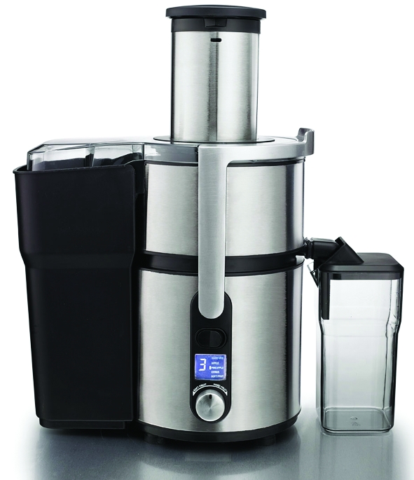 Соковыжималка используется для получения сока из овощей, фруктов и ягод. Модель оснащена ЖК-дисплеем, электронным регулятором скорости, импульсным режимом, автоматическим отделением отходов, мощным двигателем, 2 контейнерами для сока и жмыха. Корпус выполнен из нержавеющей стали с элементами черной пластмассы, конический сепаратор - из нержавеющей стали.